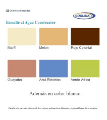 * IMPORTANTE: La carta de colores podrían lucir diferentes, según calibrado de su monitor.